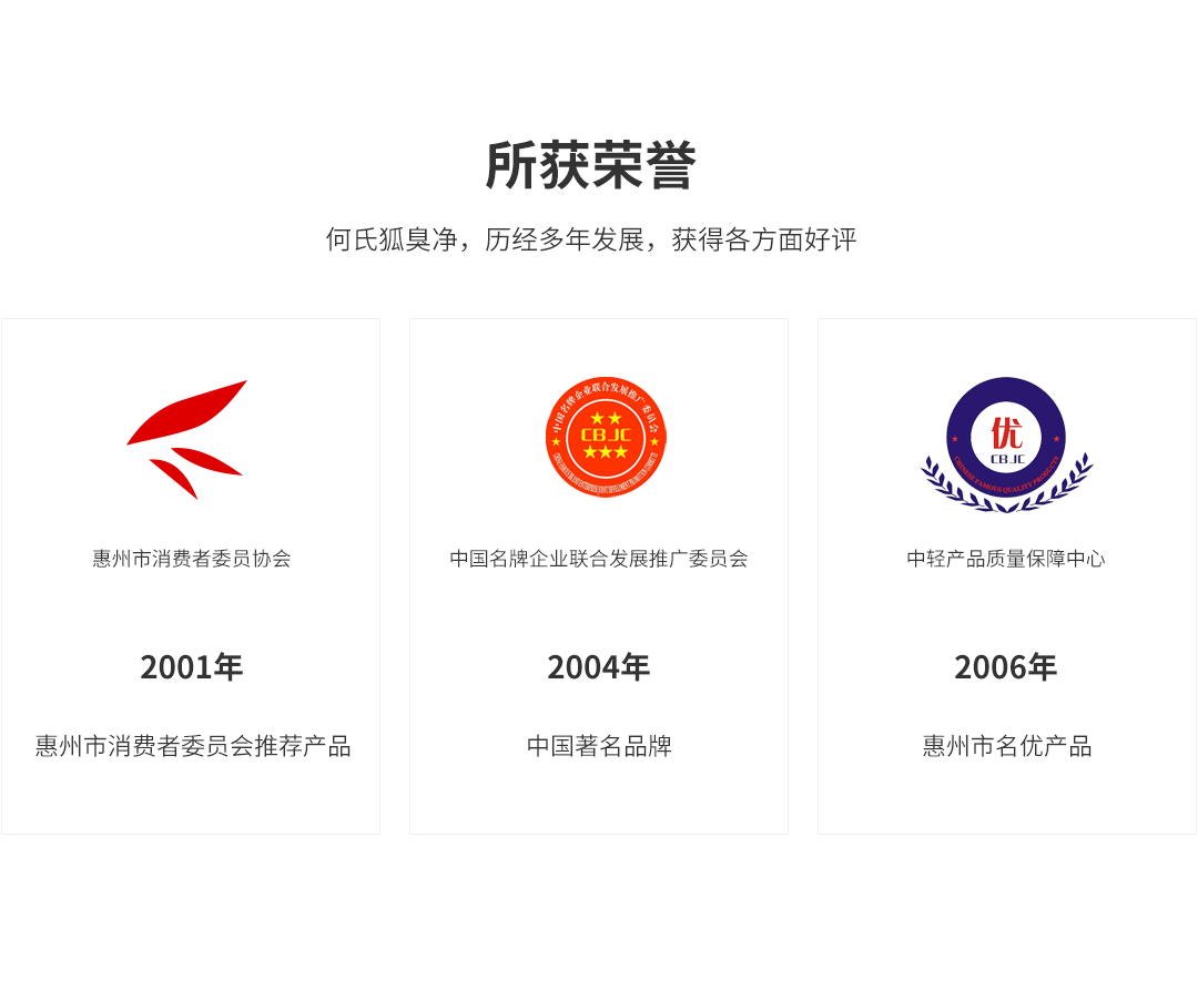 惠州市惠阳区何氏化妆品有限公司是广东省高科技企业 从一九九七年成立以来,公司拥有一批高科 人才,国家卫 生标准厂房一流生产流水线,专业生产由中华人民共和国 卫生部批准的高科技产品《何氏 狐臭净》无毒、无色、无 气味是消灭狐臭的外用液体何氏狐臭净从一九九七年上市 以来,得到了广大狐臭患 者的认可受到社会各界人士的好 评:为狐臭患者解除了痛苦,为社会做出巨大贡献。